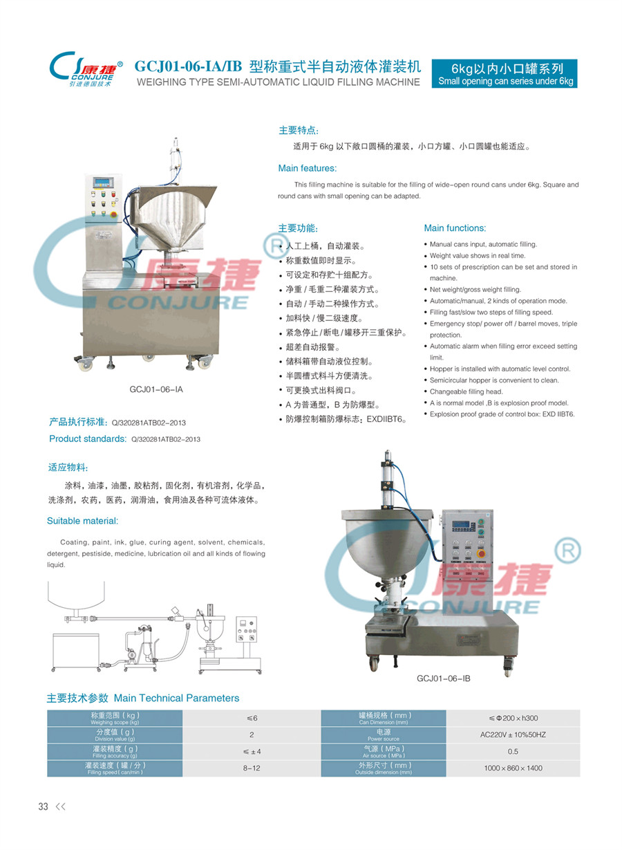 GCJ01-06-IA/IB型稱重式半自動液體灌裝機